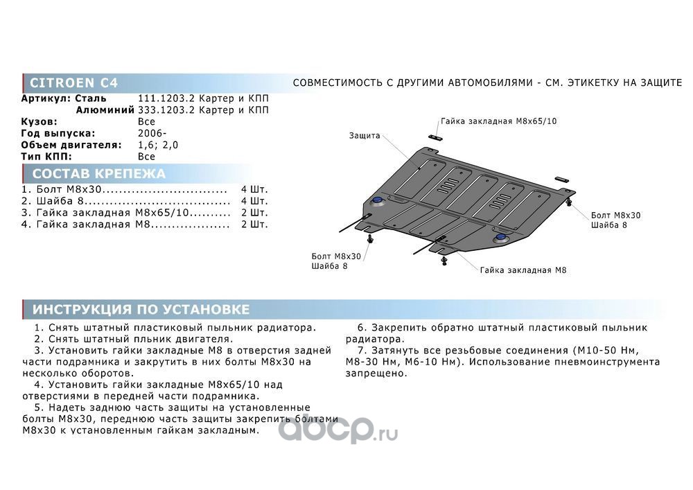 Защита картера, алюминий 3 мм, с крепежом, штампованная