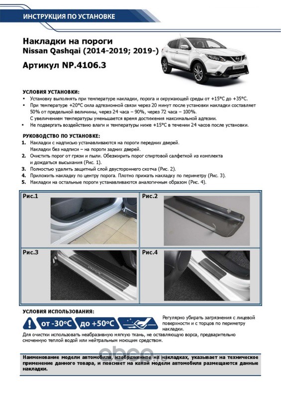 Накладки порогов (4 шт.) Nissan Qashqai 2013-> Rival