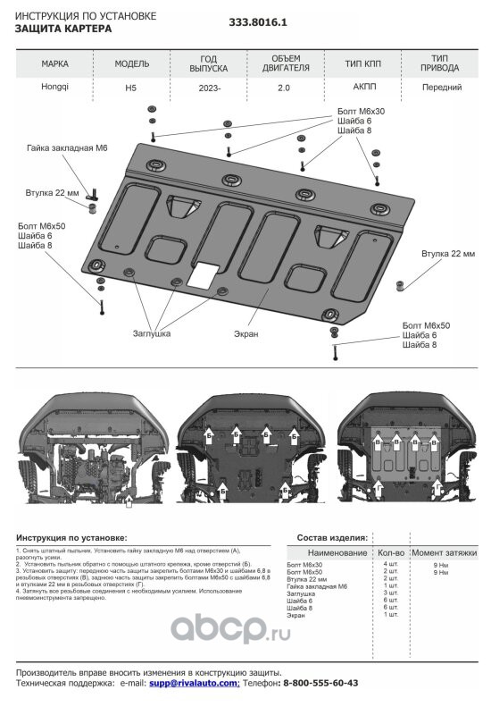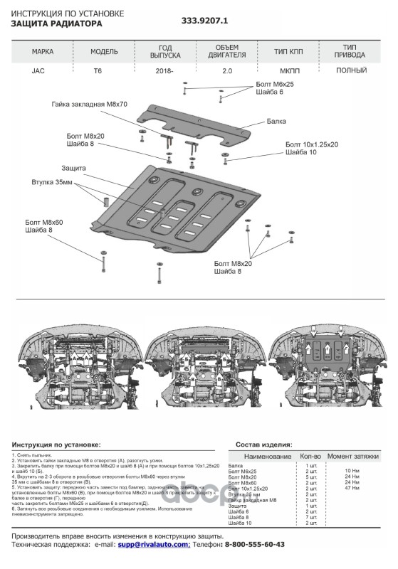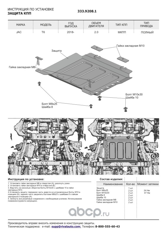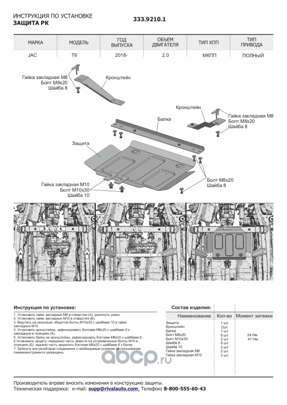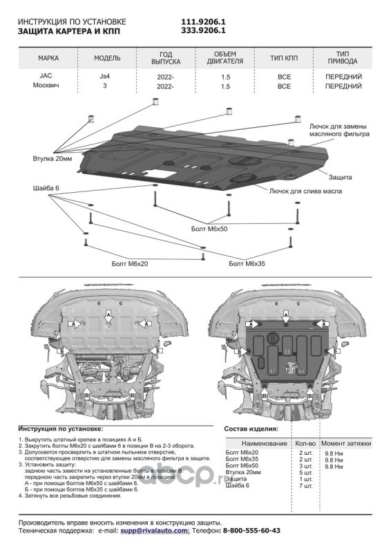 Защита картера и КПП + комплект крепежа Алюминий, JAC JS4 2022-, V-1,5, Москвич 3 2022-, V