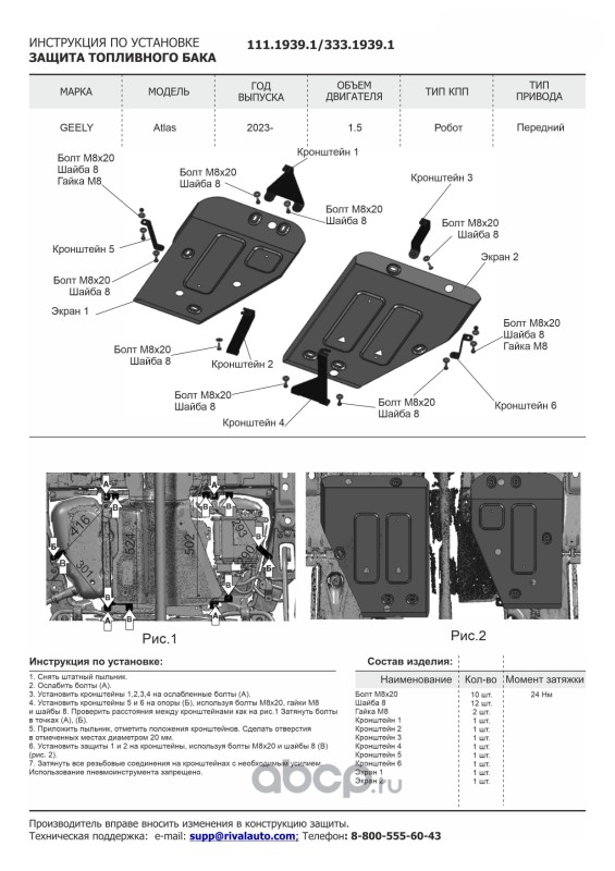 Защита топливного бака, сталь 1.5 мм, с крепежом, штампованная, 2 части
