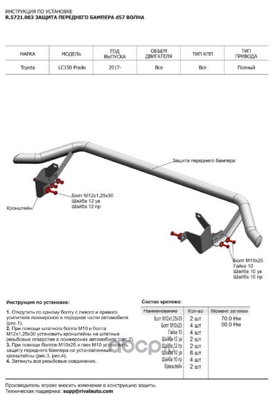 | Rival | R5720002 | Защита переднего бампера d76 | ||