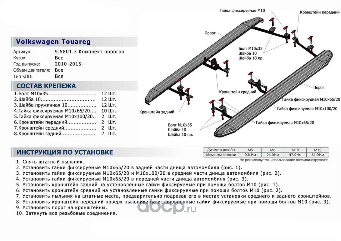 | Rival | D580511 | Силовые пороги Rival с листом D63,5 (без крепежа) | ||