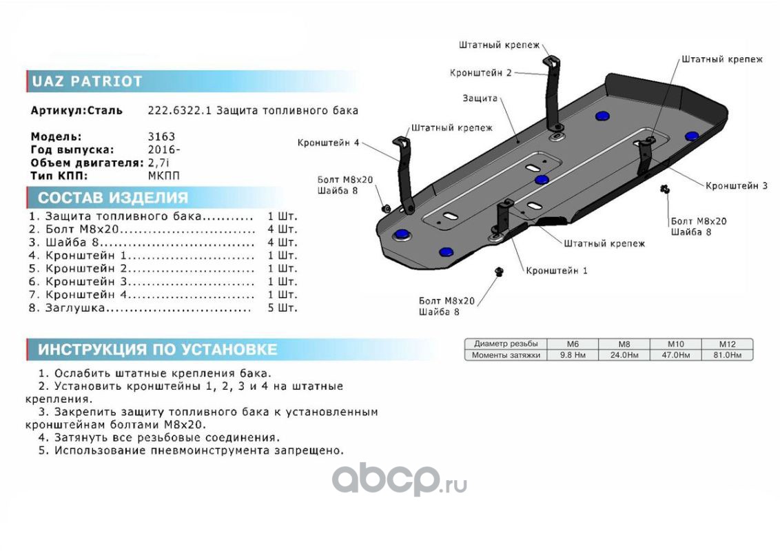 | Rival | 22263221 | Защита топливного бака | ||