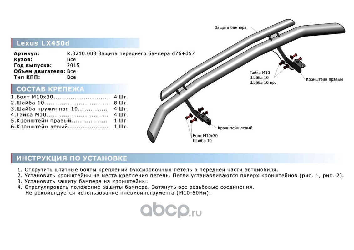 Защ.перед.бампера d76+d57 Lexus LX III 2015-
