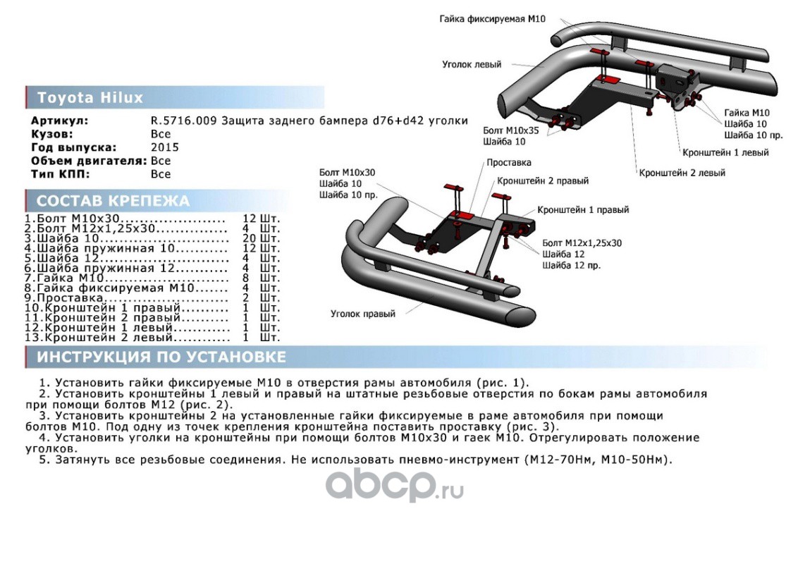 Защ.зад.бампера d57 уголки Toyota Rav4 CA40 15-