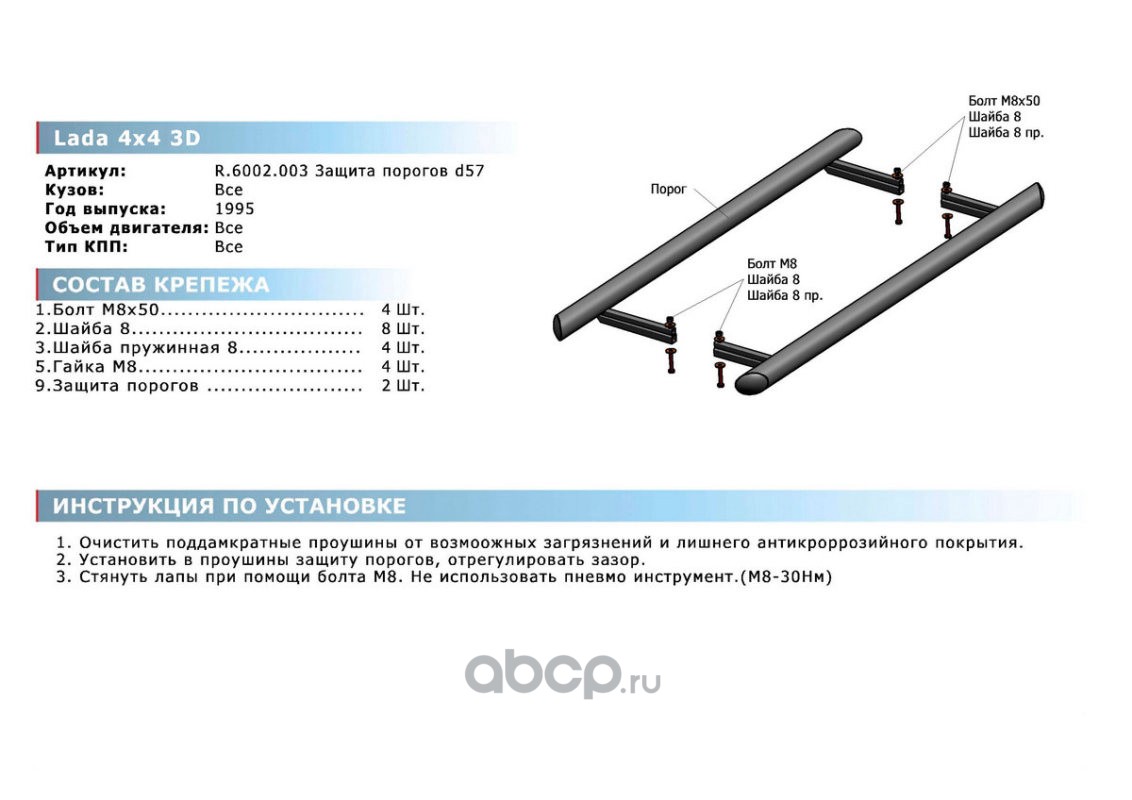 Защ.порогов d57 ВАЗ 2121 3дв. 1977-2019 2019-