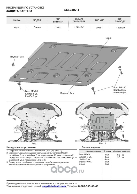 Защита картера и КПП Rival Jac J7 2020-н.в.,
