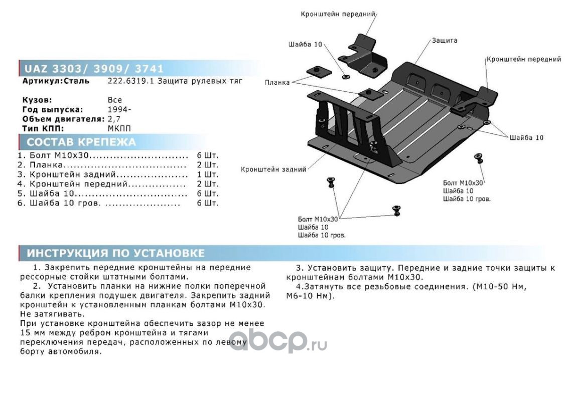 | Rival | 22263191 | Защита рулевых тяг UAZ 3303/3909/3741 1994-, st | ||
