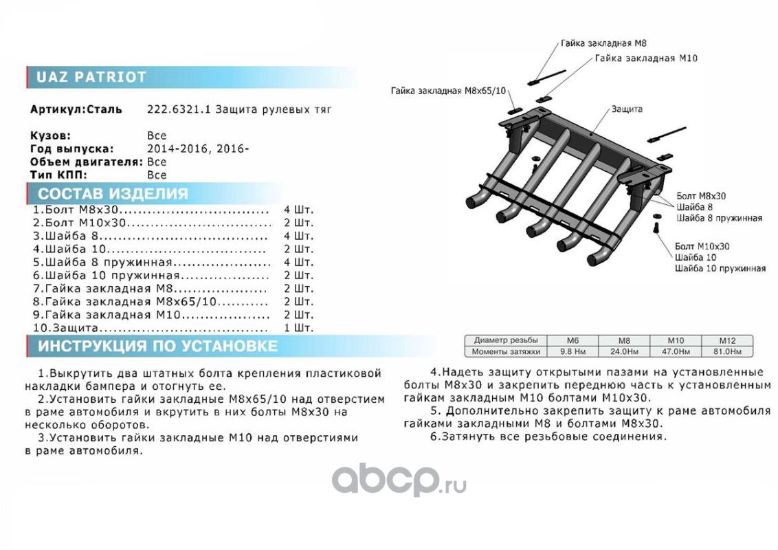 | Rival | 22263211 | Защита рулевых тяг из трубы | ||