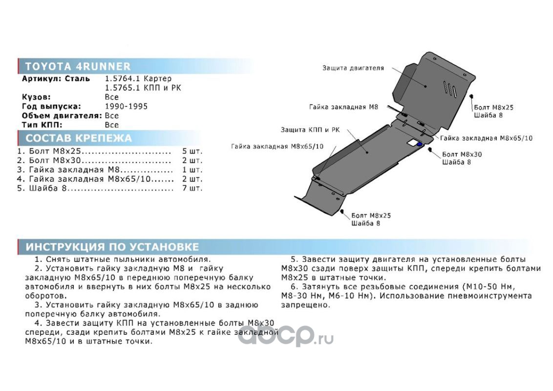 | Rival | 195011 | ЗК+радиат. ч.1 Toyota Fortuner/Hilux, 4WD st 1.8mm | ||