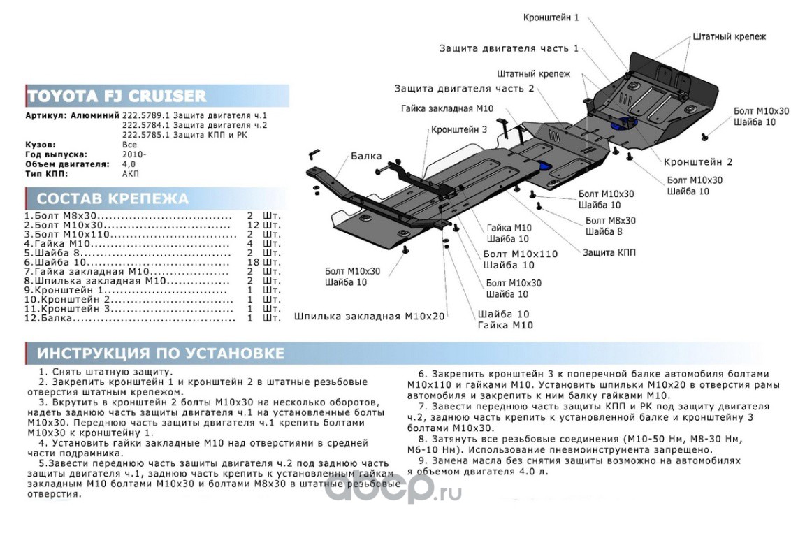 | Rival | 33357891 | Защита картера ч.1 Toyota FJ Cruiser 06-18, al 4mm | ||