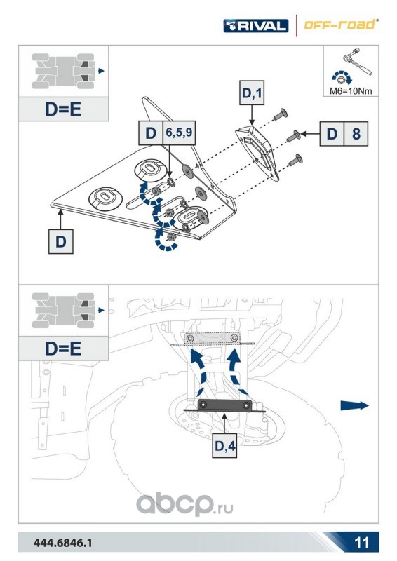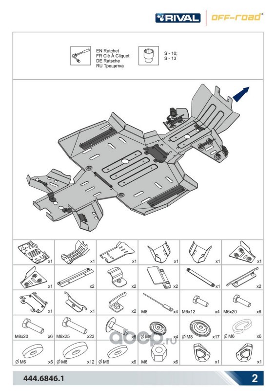 Комплект защит днища Rival для Polaris UTV RZR 1000 2013-2015, 444.7413.3