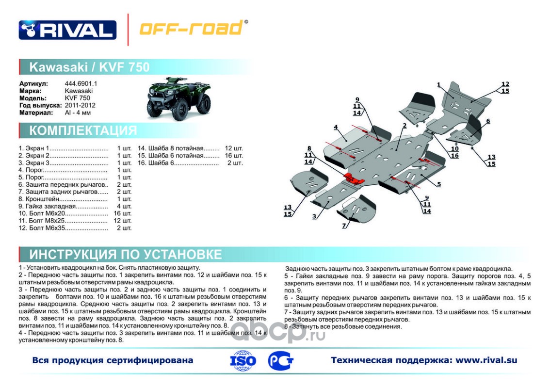 Комплект защит днища Rival для Kawasaki ATV KVF-750 2011-2012, 444.6901.1