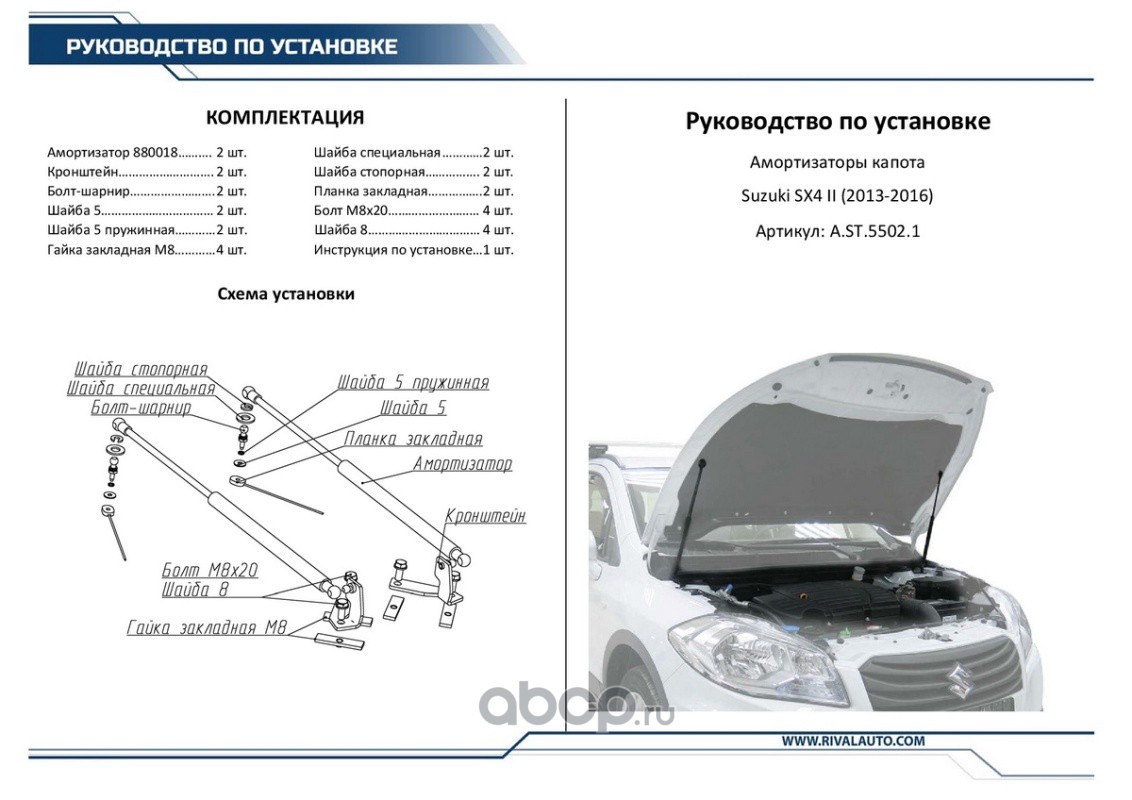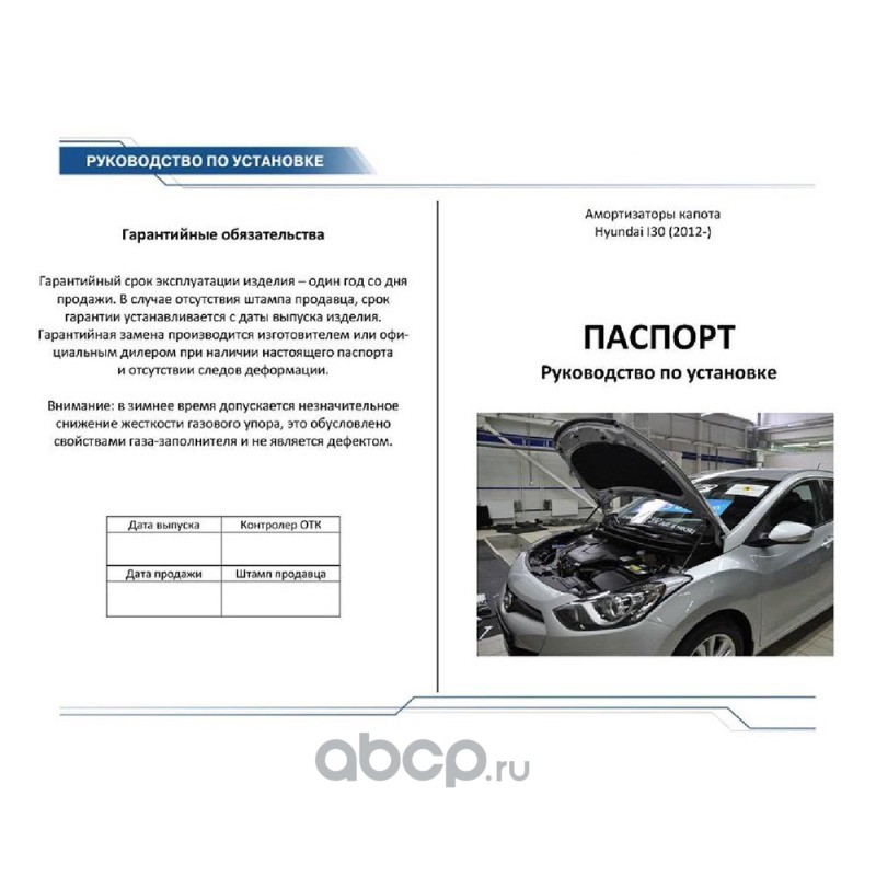 Упоры капота Rival для Hyundai I-30 2012-н.в., 2 шт.