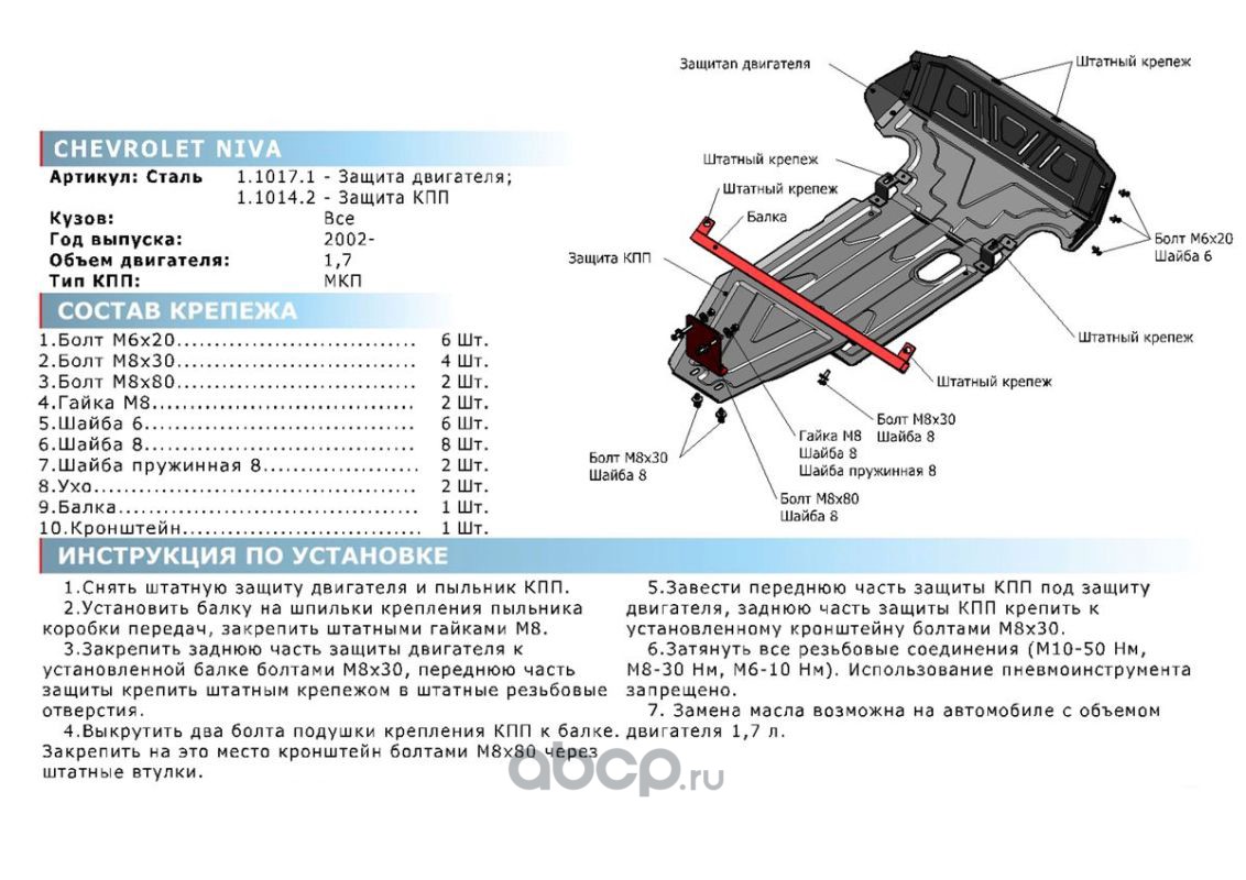 | Rival | 110171 | Защита картера Chevrolet Niva 02-09-, без крепежа |