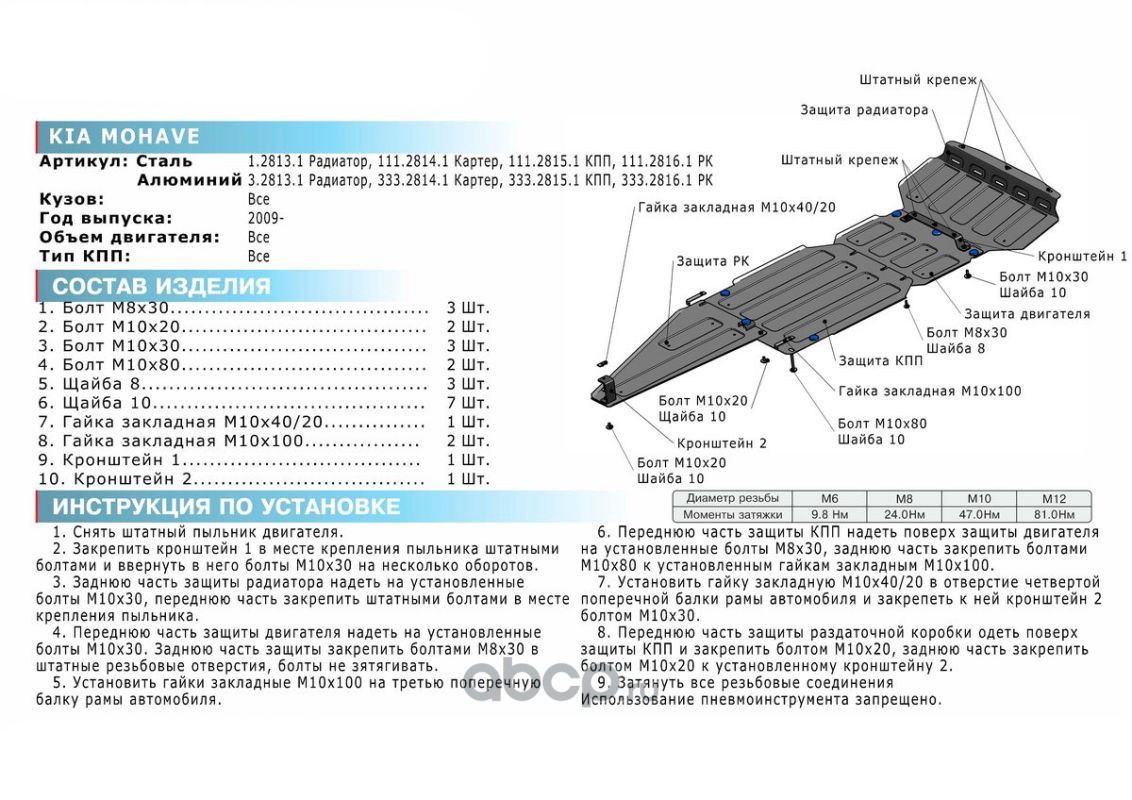 | Rival | 11128141 | Защита картера Kia Mohave 2008-2017 | ||