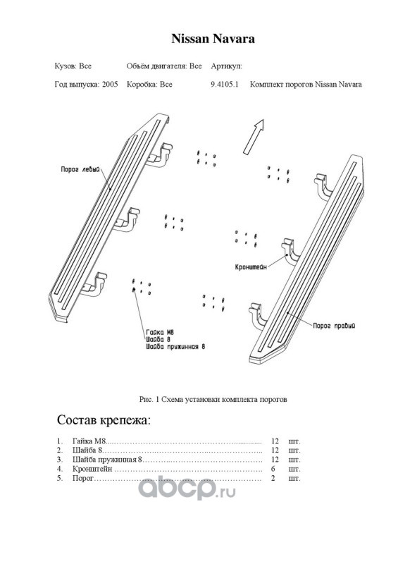 | Rival | A193ALB41051 | Пороги Premium-Black Nissan Navara 04-15 193 см al | ||
