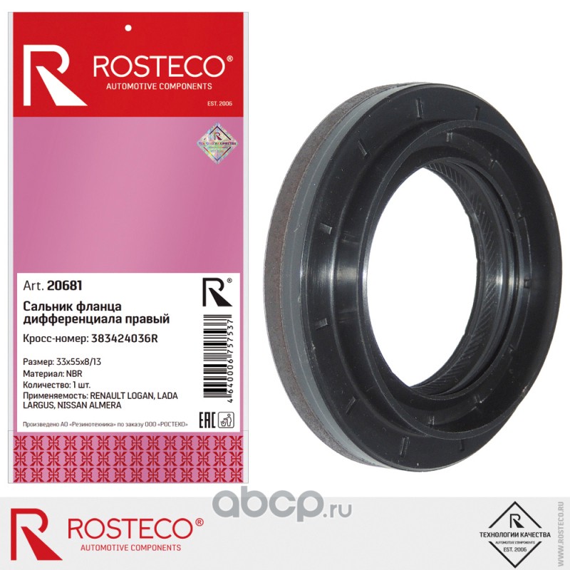 | Rosteco | 20681 | Сальник дифференциала правый 33х55х8/13 NBR | ||