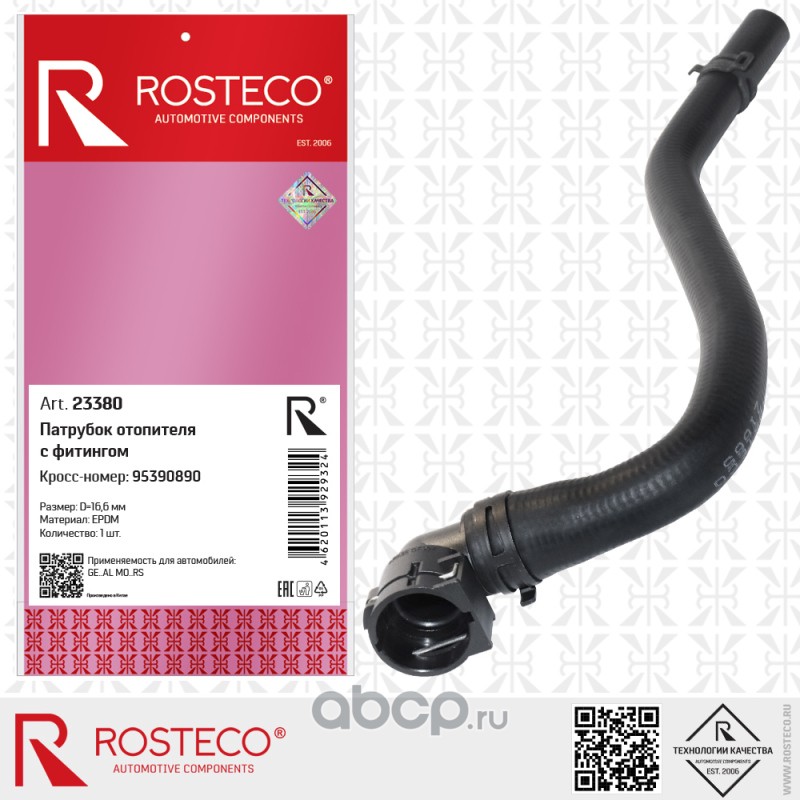 | Rosteco | 23380 | Патрубок отопителя с фитингом EPDM | ||
