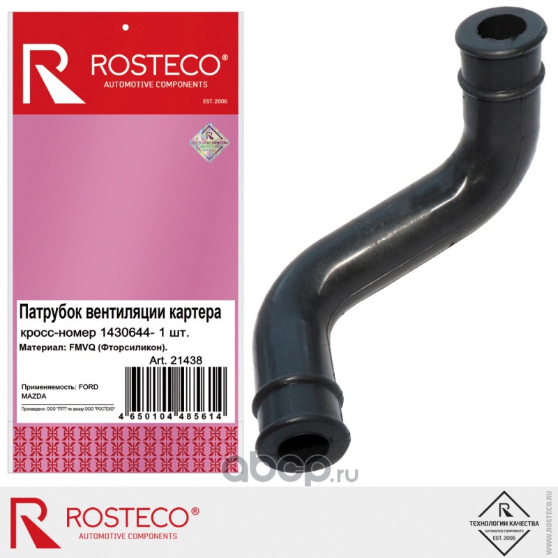 | Rosteco | 21438 | патрубок вентиляции картера верхний FMVQ (фторсиликон) | ||