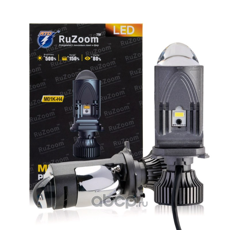 Лампа светодиодная c линзой H4 6500K 4000Lm (P43t) 12В, коробка: 2шт