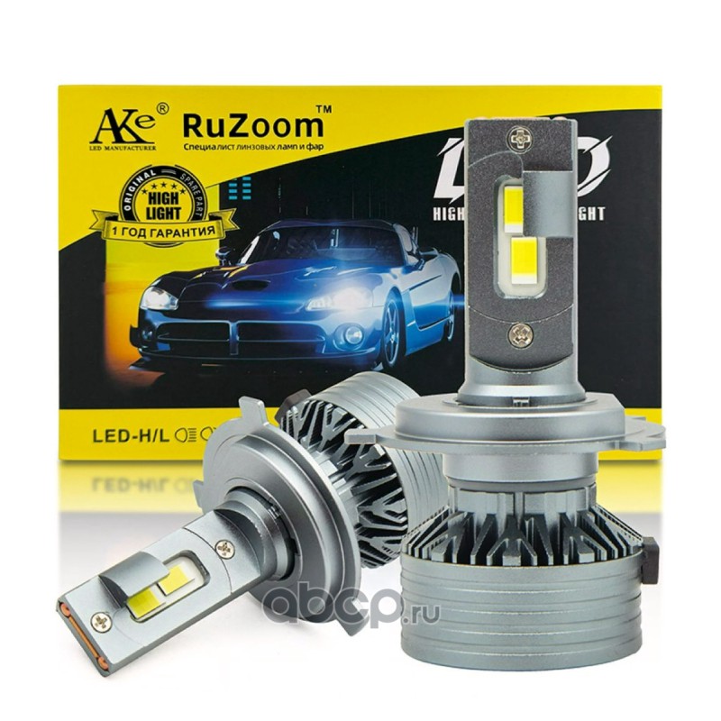| RuZoom | T2H4 | Лампа светодиодная H4 6500K 5000Lm (P43t) 12В, коробка: 2шт | ||
