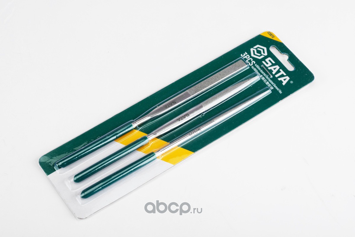 SATA 3870 Надфили (набор) 3пр. Разные виды и сечения (160мм.) прямые, алмазные.