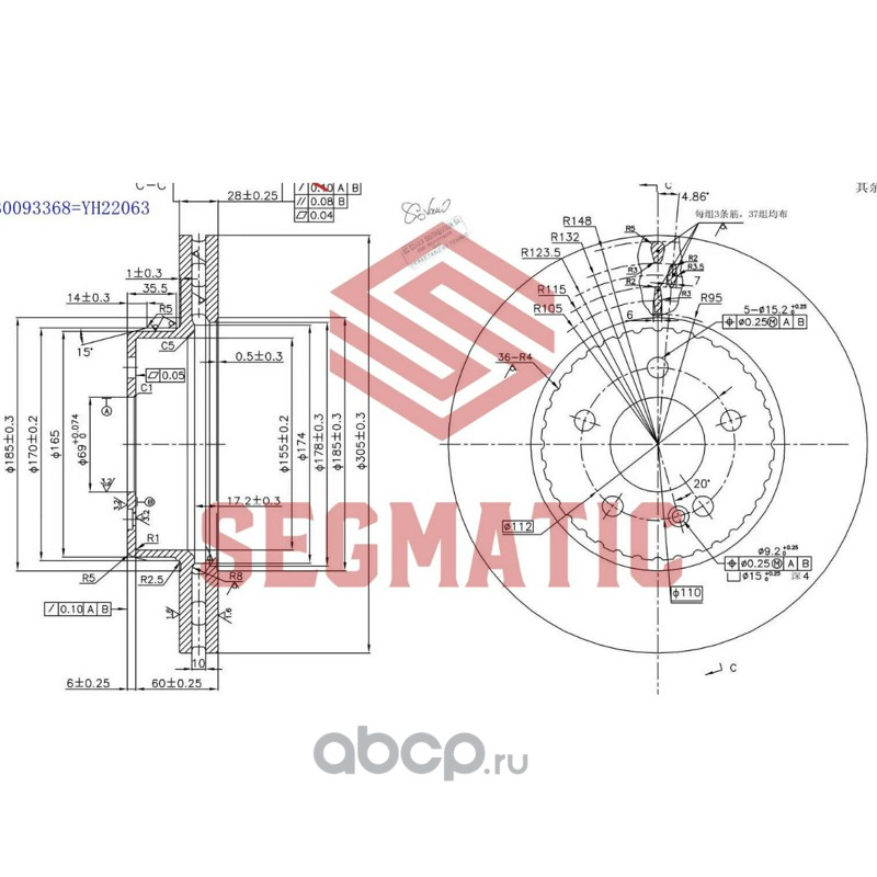 Диск тормозной пер MERCEDES BENZ C-CLASS (W205, A205, C205, S205), C-CLASS (W205) 13=>/E-CLASS (W213) 16=> [305,0x62,5x28,0]