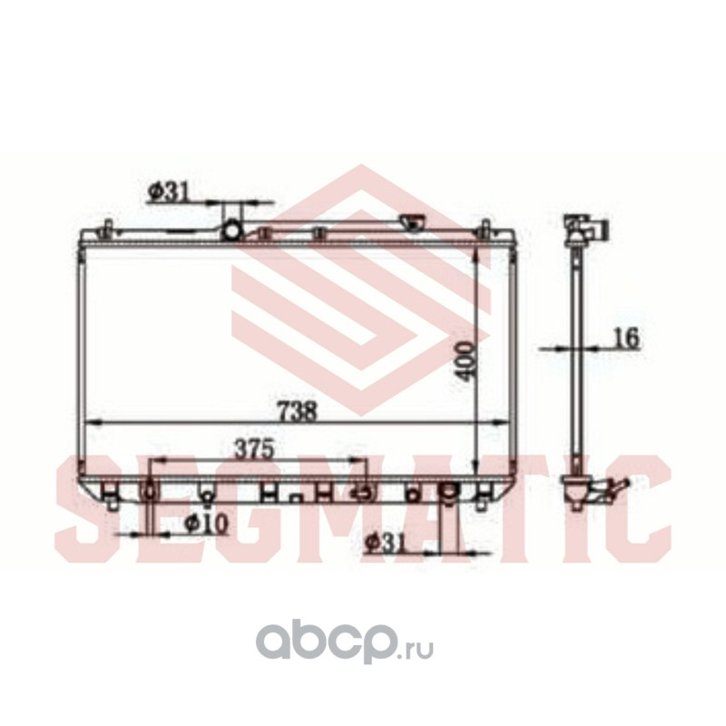 Радиатор двигателя MT для а/м KIA Spectra (96-) 1.5/1.6/1.8