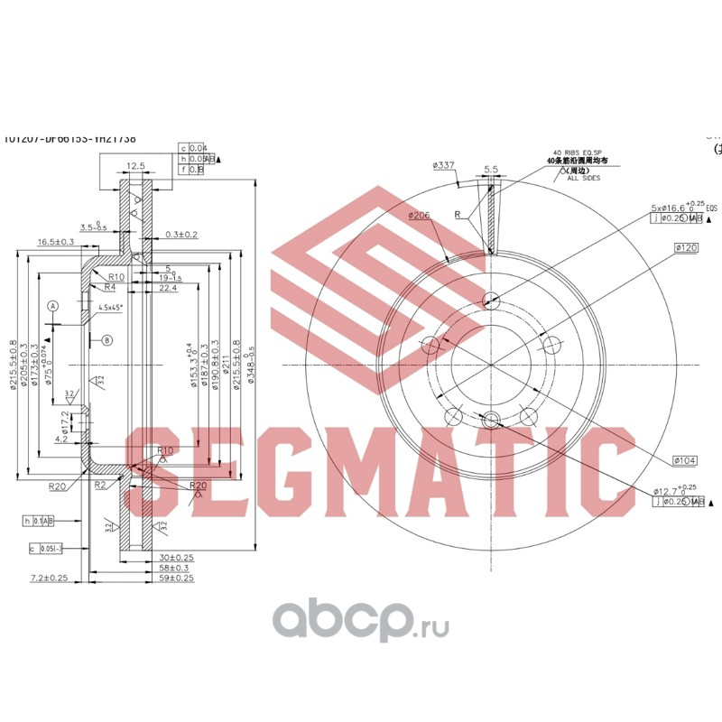 Диск тормозной пер вент. BMW 5 F10 11-/6 F 06 10-/7 F01, BMW 5 F10/F11 2.8/3.0/2.5D/3.0D 10- [348*66*30]