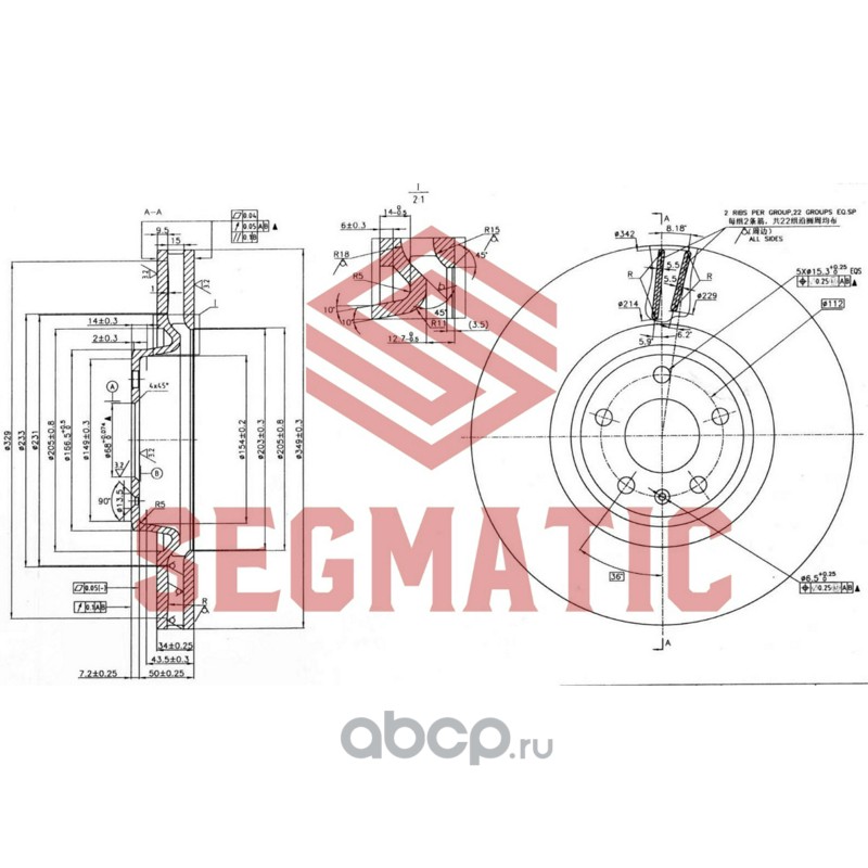Диск тормозной пер AUDI A4, A5, A6, Q5, Q7 18-, VW TOUAREG III- [349*57,4*34]