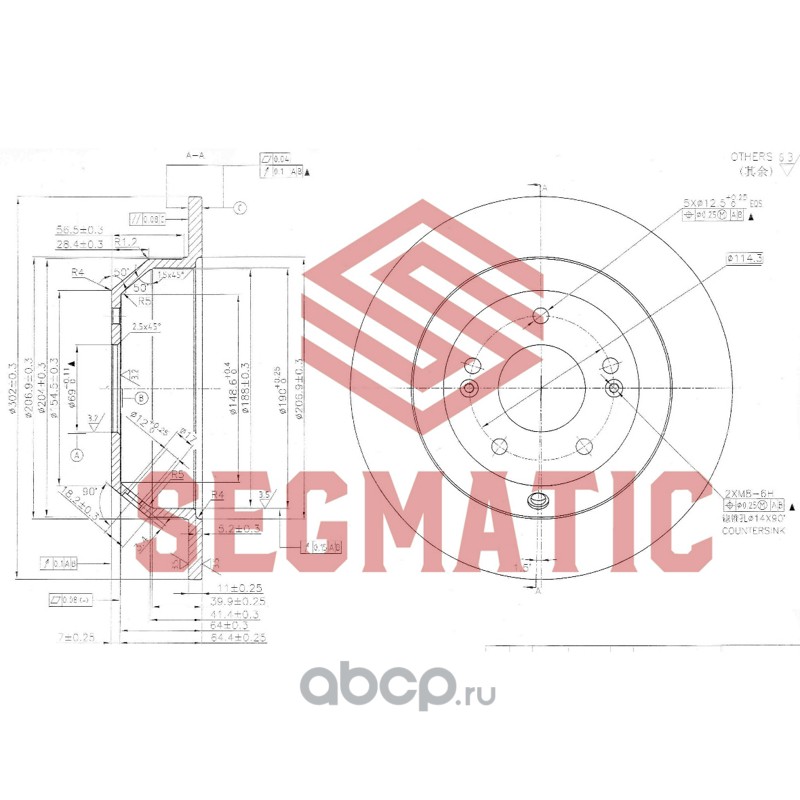Диск тормозной пер MERCEDES BENZ Sprinter (901,902,903,904) 95-06, VW LCV LT 28-46 96- (=SBD30093031)