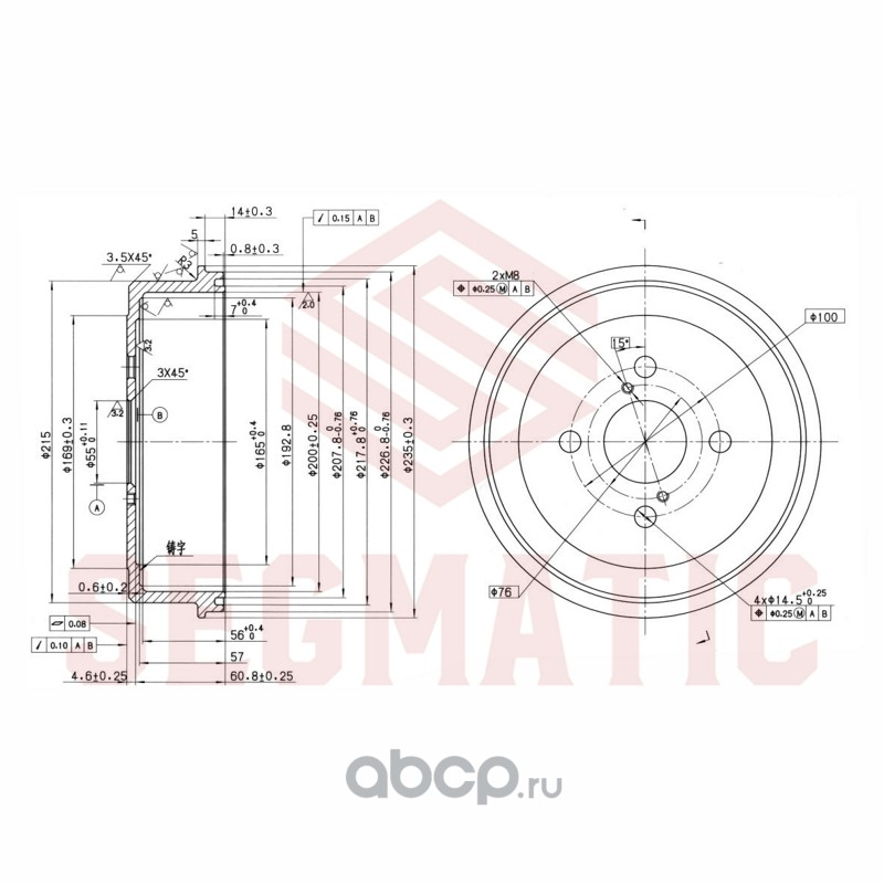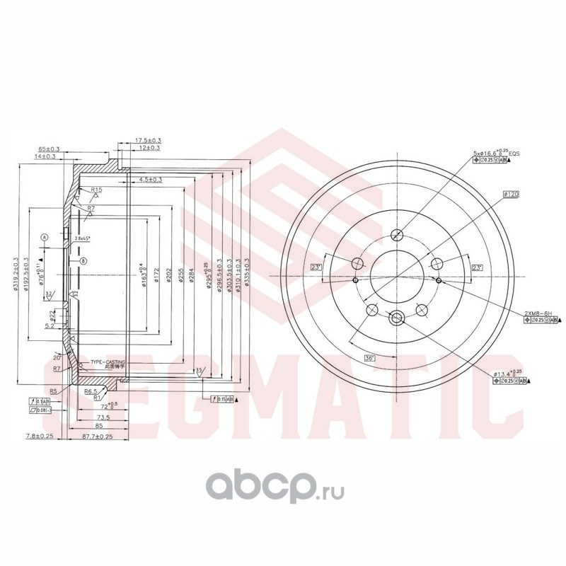Барабан тормозной Toyota Fortuner 2015>, Toyota Hilux 2005-2015, Toyota Hilux 2015>