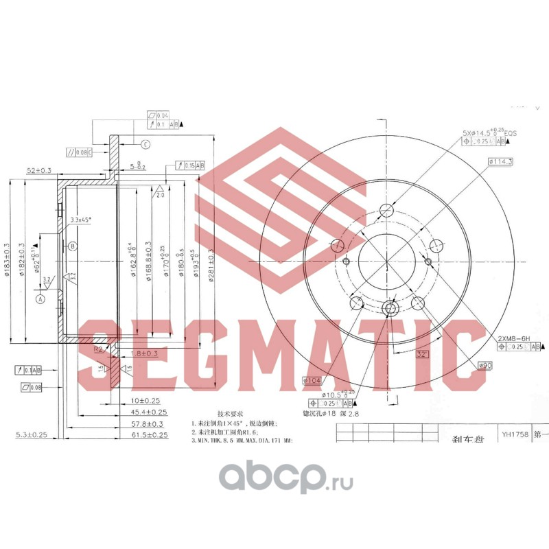 Диск тормозной зад TOYOTA Camry (06-), D=281mm