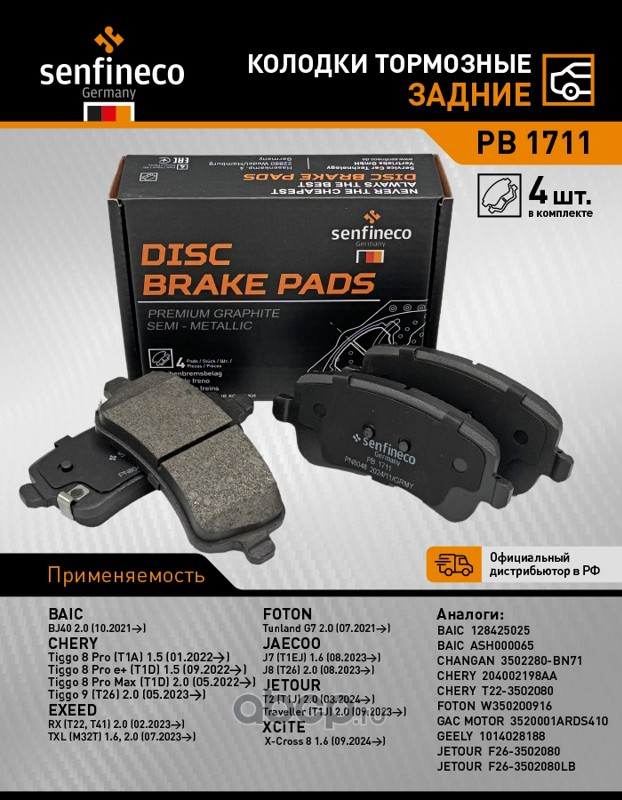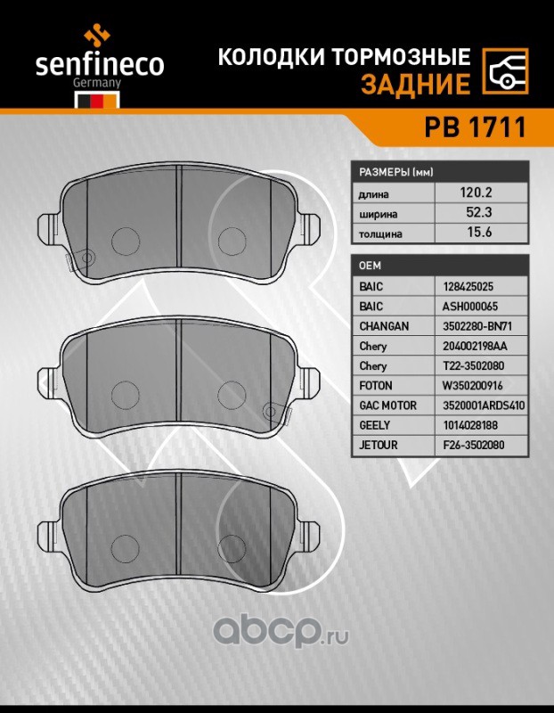 | SENFINECO | PB1711 | Колодки тормозные задние | ||