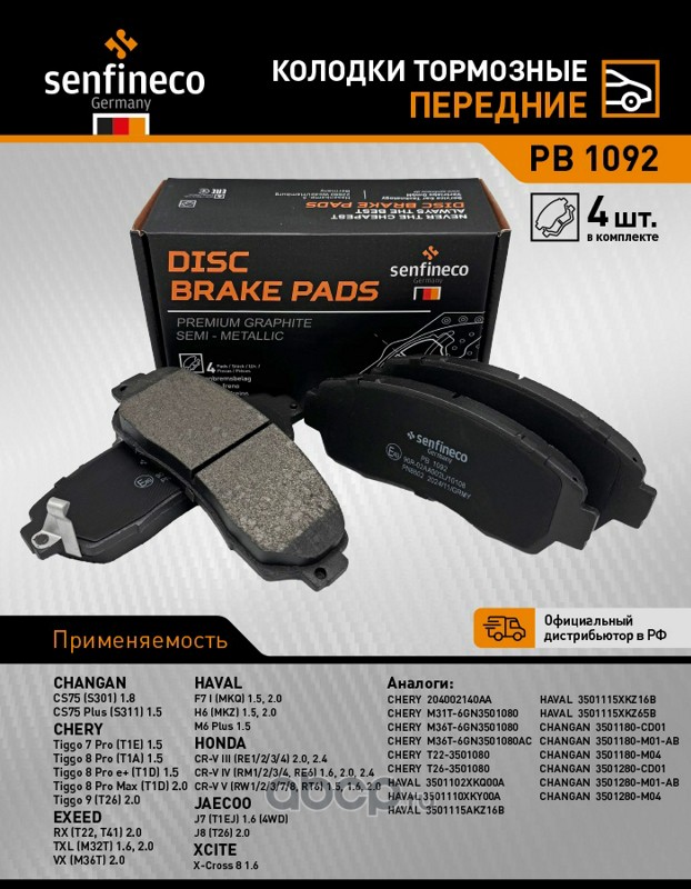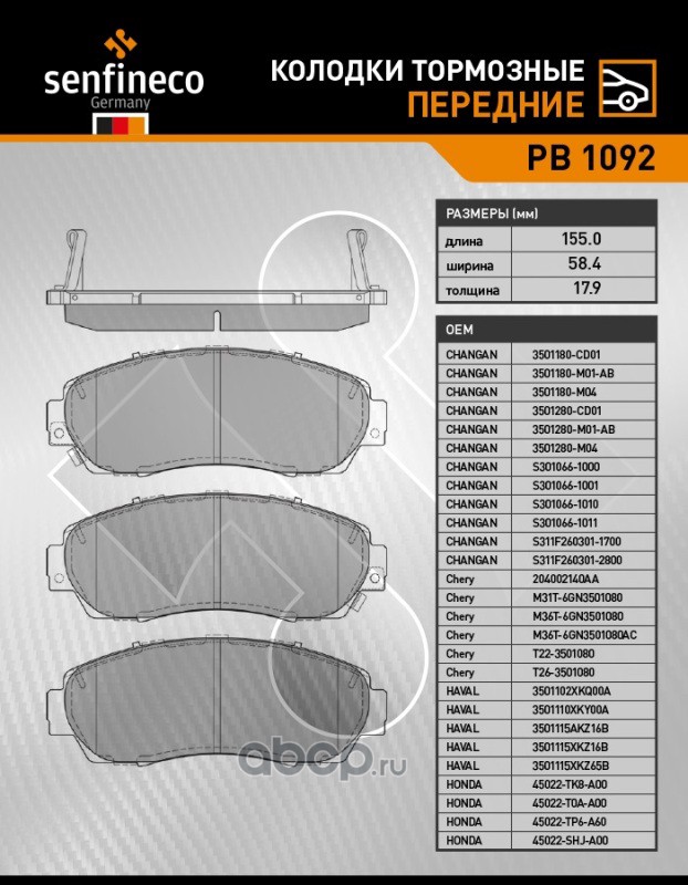 | SENFINECO | PB1092 | Колодки тормозные передние | ||