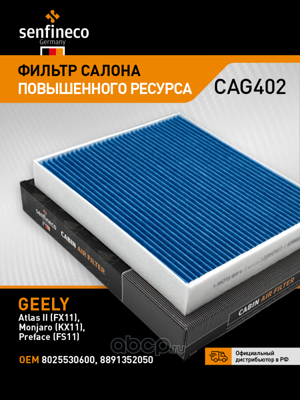 | SENFINECO | CAG402 | Фильтр салона двуслойный (увеличенного ресурса) | ||