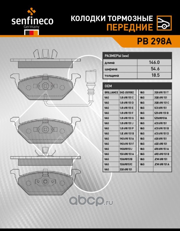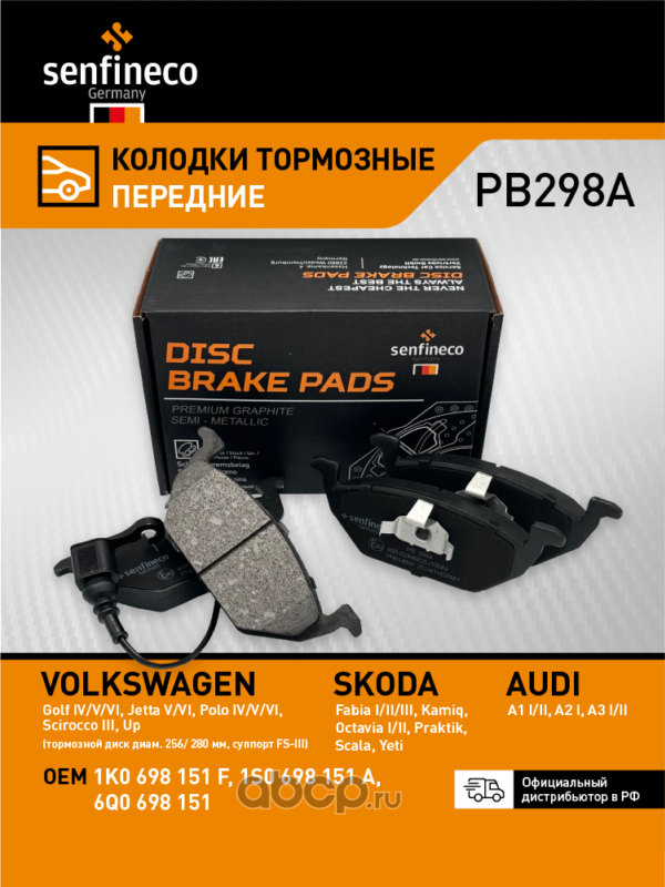 | SENFINECO | PB298A | Колодки тормозные передние | ||