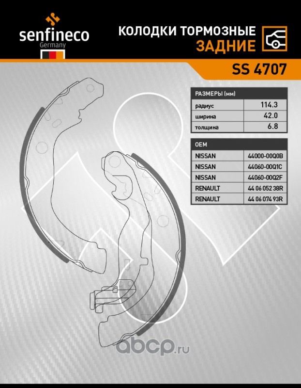 | SENFINECO | SS4707 | Колодки тормозные задние (барабанные) | ||