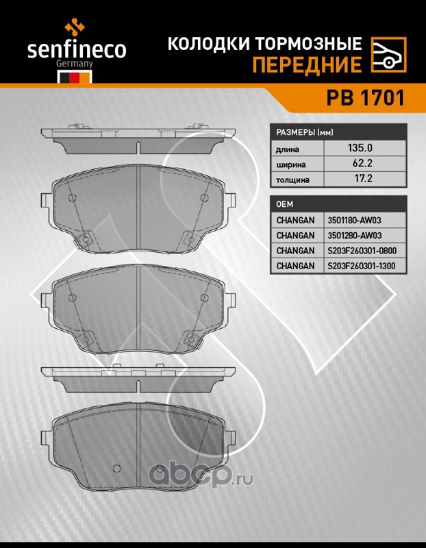 | SENFINECO | PB1701 | Колодки тормозные передние | ||