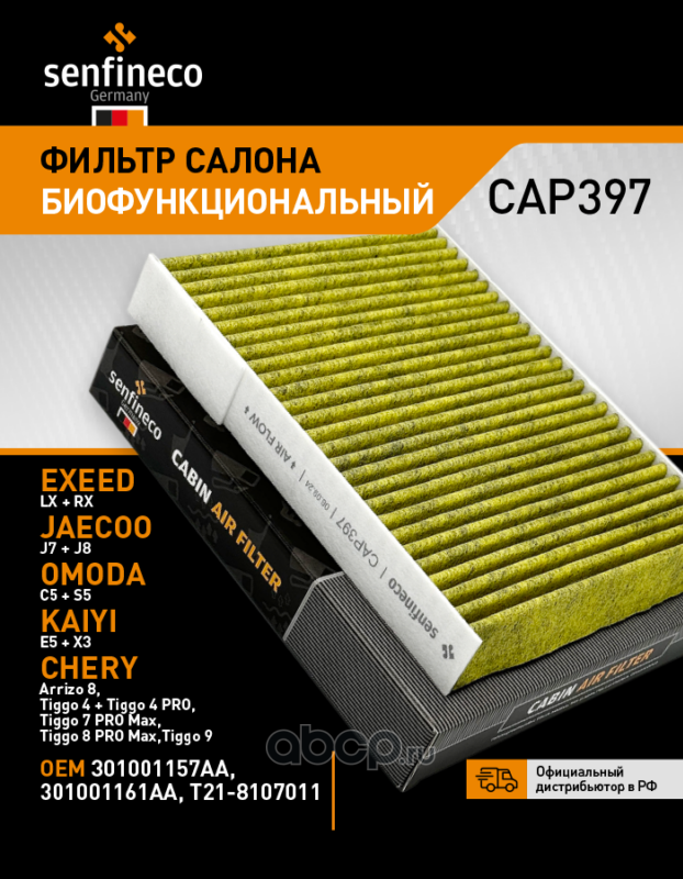 | SENFINECO | CAP397 | Фильтр салона антибактериальный | ||