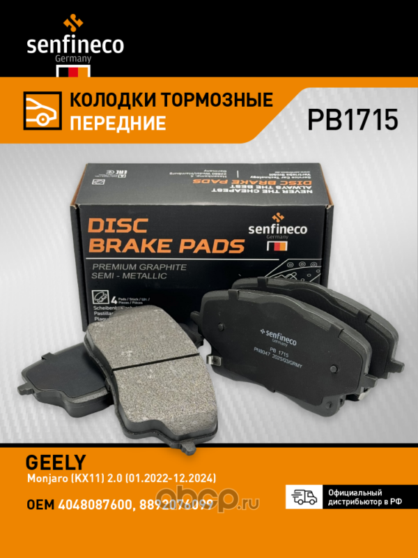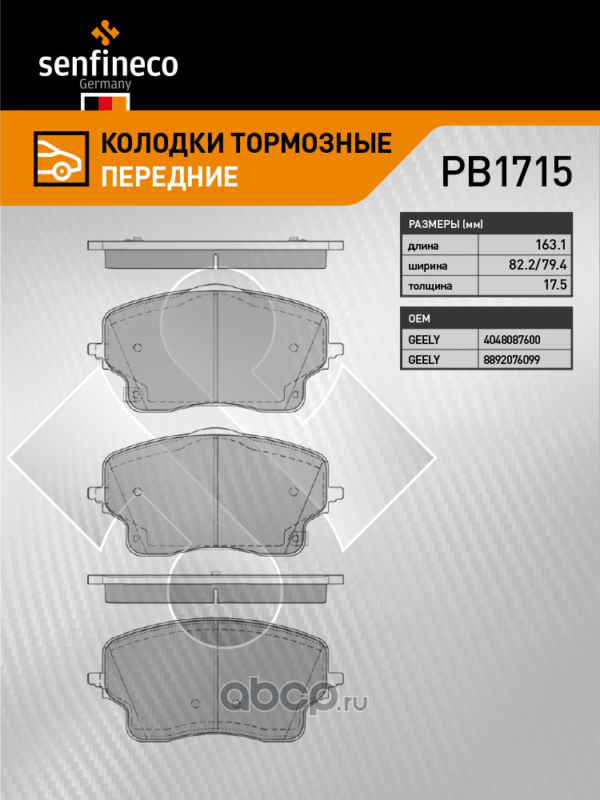 | SENFINECO | PB1715 | Колодки тормозные передние | ||
