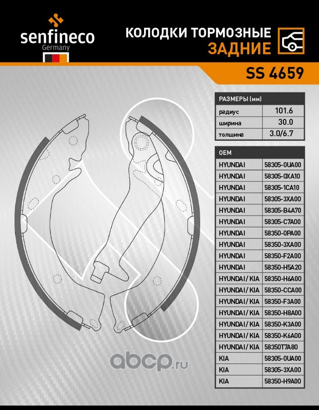| SENFINECO | SS4659 | Колодки тормозные задние (барабанные) | ||