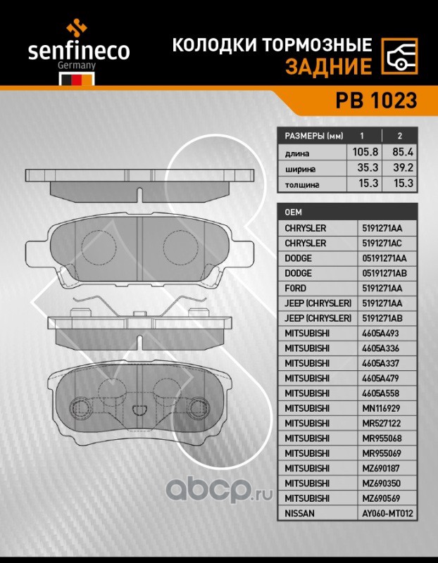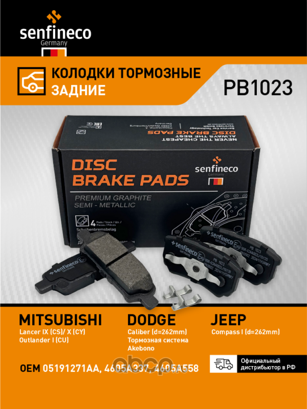 | SENFINECO | PB1023 | Колодки тормозные задние | ||