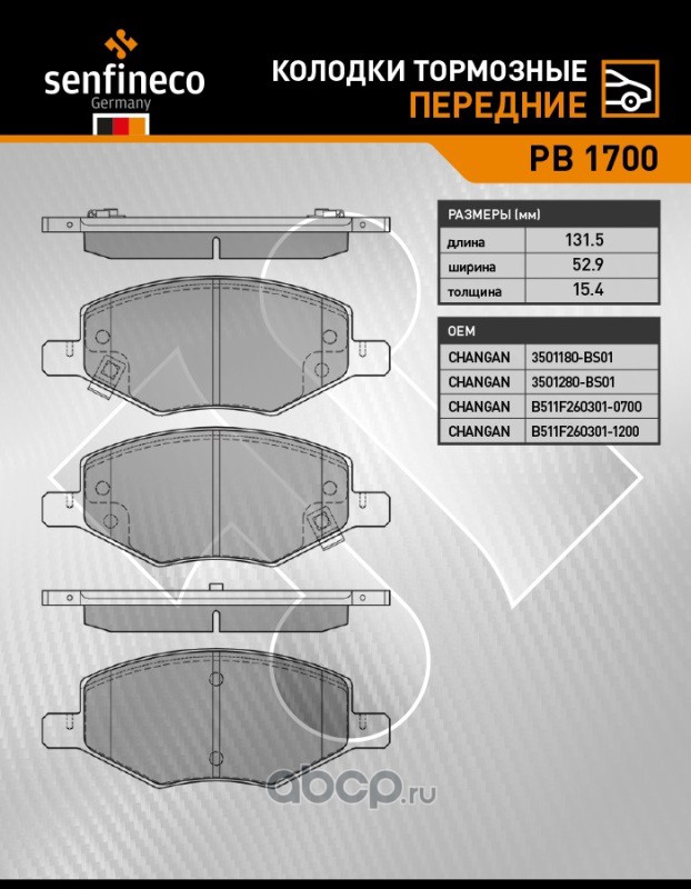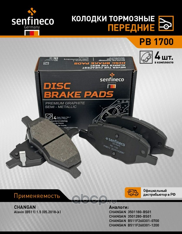 | SENFINECO | PB1700 | Колодки тормозные передние | ||