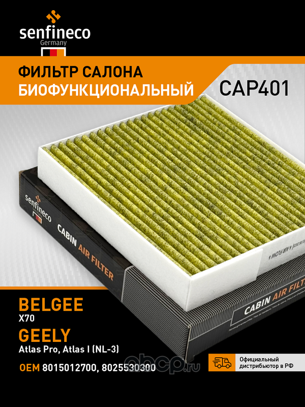 | SENFINECO | CAP401 | Фильтр салона антибактериальный | ||