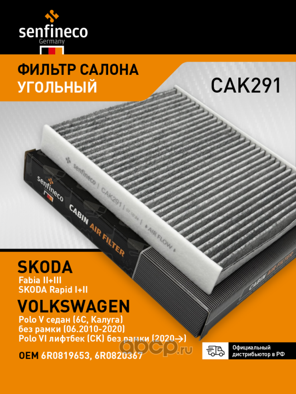 | SENFINECO | CAK291 | Фильтр салона угольный | ||