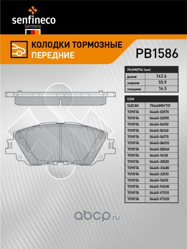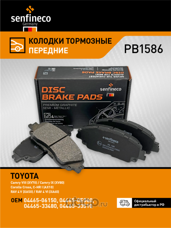| SENFINECO | PB1586 | Колодки тормозные передние | ||