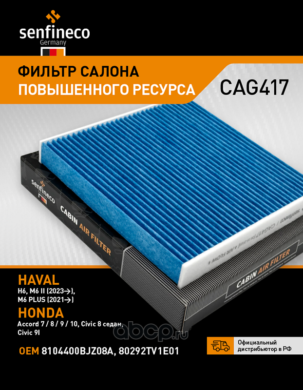 | SENFINECO | CAG417 | Фильтр салона двуслойный (увеличенного ресурса) | ||