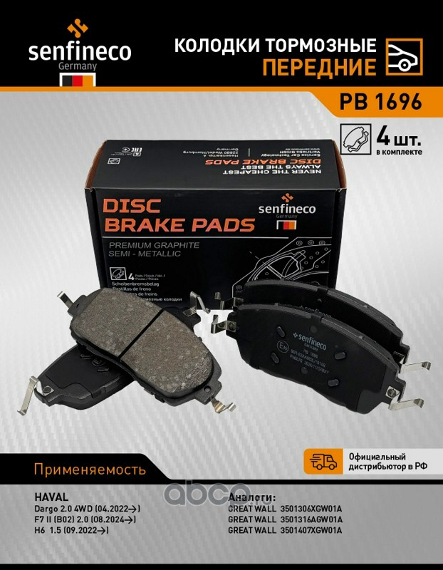 | SENFINECO | PB1696 | Колодки тормозные передние | ||